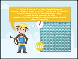 Find the number on the covered 120 grid. When you find the number a firework will go off to let you know the answer was correct.