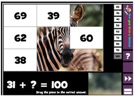 Practice algebraic equations from 20 up to 100 to solve each puzzle. Ranges from 20 to 100. High level of thinking for more advanced students.